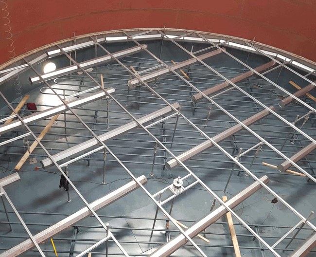 Designed to rest directly on the liquid surface, the full contact internal floating roof offers excellent vapor control and minimizes emissions by maintaining a tight seal. Its continuous contact with the liquid reduces evaporation losses and enhances tank safety. Ideal for volatile or sensitive materials, this type provides optimal performance in preventing contamination and maintaining product quality.